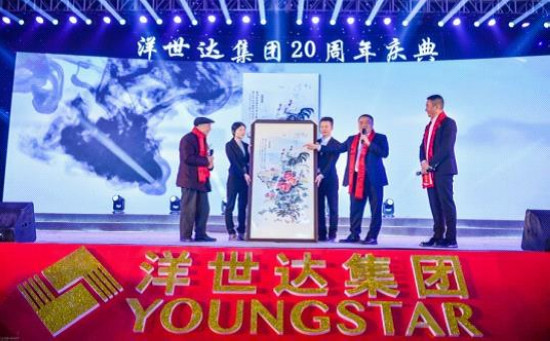 緊接著,來自長壽陽光世紀城小區,長壽區老年書畫研究會創始人,82歲高齡的業主陳老先生,為洋世達20歲生日送來他親手繪制的賀禮《牡丹富貴圖》,集團總裁張志興先生代表全體洋世達員工接受了這一份特別的禮物!