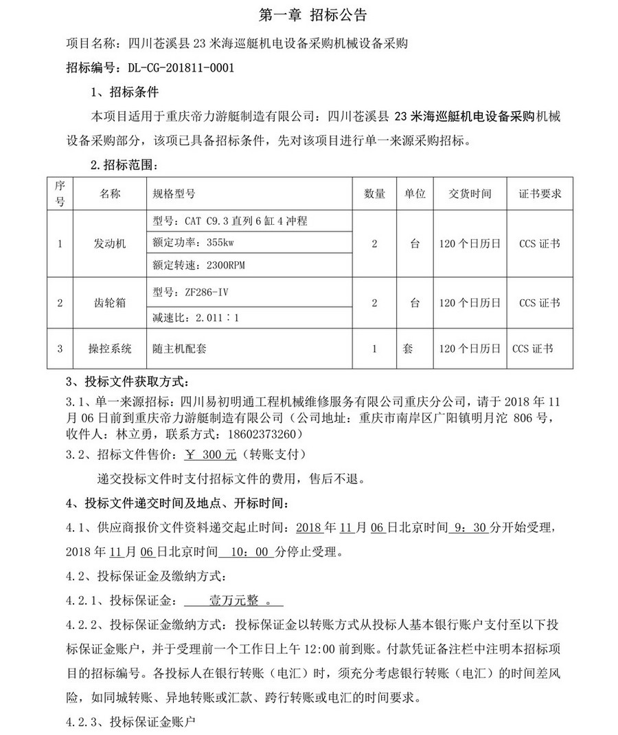 四川蒼溪縣23米海巡艇機(jī)電設(shè)備采購(gòu)機(jī)械設(shè)備采購(gòu)