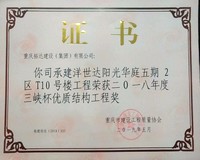 ? 2019年5月,洋世達(dá)陽(yáng)光華庭五期2區(qū)T10號(hào)樓工程榮獲重慶市建筑工程質(zhì)量協(xié)會(huì)頒發(fā)的“二O一八年度三峽杯優(yōu)質(zhì)結(jié)構(gòu)工程獎(jiǎng)”