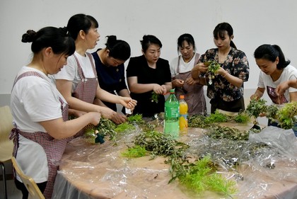 活動現(xiàn)場,同事們圍在桌邊。手工材料包中,新鮮的艾草、輕巧的竹編、金色的鈴鐺、五彩的流蘇,寄托著大家濃濃的端午祝福。只見,同事們靈巧的雙手在竹編和艾草間來回穿梭,大家一邊相互交流一邊認(rèn)真制作掛件。不一會兒,一個個精致美觀的艾草掛件就紛紛成形。一縷縷艾草清香沁人心脾,現(xiàn)場歡聲笑語不斷。