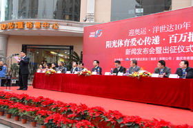2007年11月19日,“陽光華庭”小區入口廣場花團錦簇,喜氣洋洋,由洋世達集團與重慶市希望工程促進會聯合舉辦的“迎奧運?洋世達10年-陽光體育愛心傳遞”大型捐贈活動的新聞發布會暨出征儀式在這里隆重舉行。