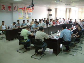 座談會上,集團公司領導通報了公司有關工作情況,并向大家表示節日的祝賀。大家紛紛表示,要干好本職工作,決不辜負領導的厚望。 隨后,進行了軍歌大家唱和吃西瓜比賽。個個拿出看家本領,掌聲、歡笑聲、吶喊聲、加油聲此起彼伏,將整個活動推向了高潮。