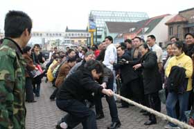 15日一大早,公司全體員工就趕到了活動現(xiàn)場,懷著激動的心情開始熱身。9點30分,比賽活動正式開始。一陣陣加油!聲響徹了整條街道,引來了不少游人的駐足觀看,拉開了整個年拜會活動的序幕。經(jīng)過一個多小時的激烈角逐,物管公司、驕陽公司、集團公司分獲一、二、三名,公司領(lǐng)導(dǎo)親自頒獎。