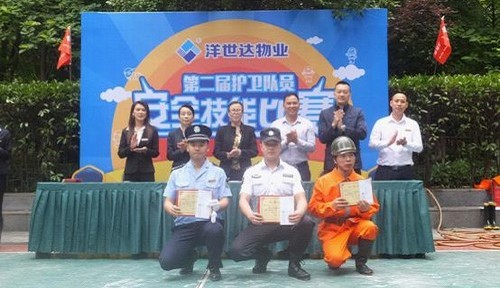 2016年5月26日上午9點,洋世達物業第二屆護衛隊員安全技能比賽在陽光華庭三期籃球場隆重舉行。陽光華庭、陽光匯、南濱特區、陽光世紀城、圣天湖、菩提印象共6個代表隊參加了此次角逐。本次比賽分為兩個部分:一是在現場進行軍事隊列動作、交通指揮、消防出水操、火災撲救等項目競賽;二是在日常隨機抽查護衛人員對作業流程、工作技巧、小區概況的熟悉程度,崗位記錄、儀表儀容,崗亭、宿舍清潔衛生等。